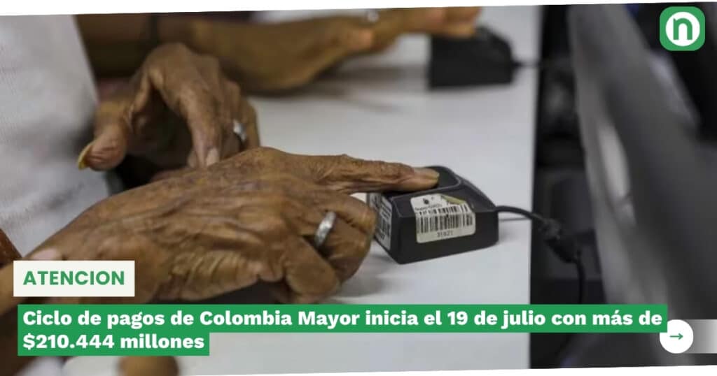 Ciclo de pagos de Colombia Mayor inicia el 19 de julio con más de $210.444 millones