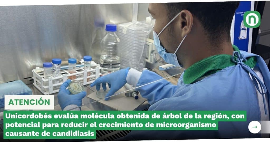 Montería, 29 de mayo de 2024. Con procedimientos químicos y biológicos enmarcados en el método científico, el unicordobés Ricardo José Berrio Soto, recién graduado del programa de Biología, Facultad de Ciencias Básicas de esta alma mater, demostró que una molécula extraída de un árbol de la región, tiene potencial para reducir el crecimiento de microorganismos patógenos causantes de candidiasis, enfermedad que, de acuerdo con estadísticas recopiladas por el investigador, causa al menos 1,6 millones de decesos anuales en el mundo.