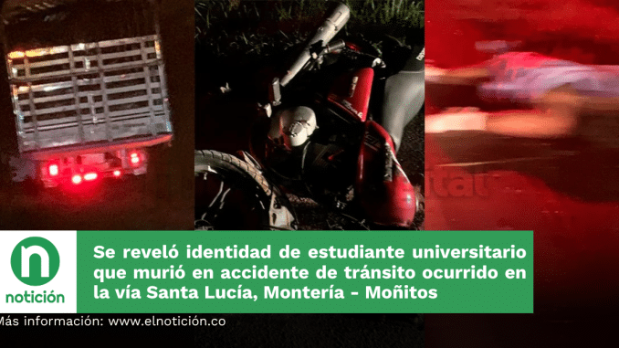 Se reveló identidad de estudiante universitario que murió en accidente de tránsito ocurrido en la vía Santa Lucía, Montería – Moñitos