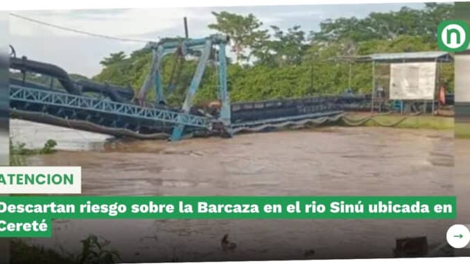 Descartan riesgo sobre la Barcaza en el rio Sinú ubicada en Cereté