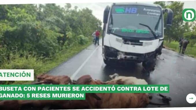 BUSETA CON PACIENTES SE ACCIDENTÓ CONTRA LOTE DE GANADO: 5 RESES MURIERON
