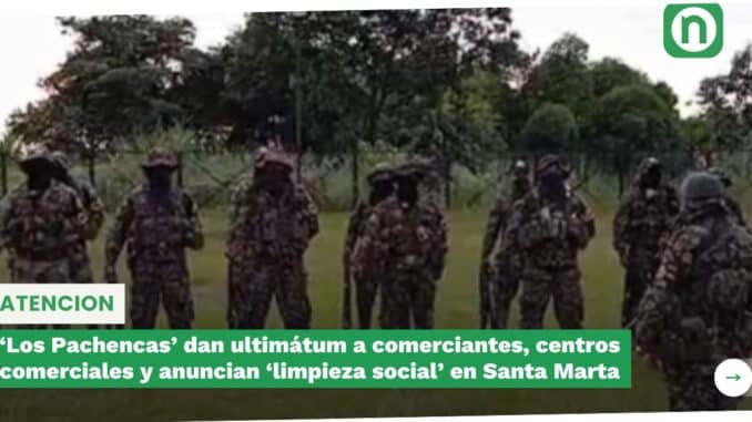 ‘Los Pachencas’ dan ultimátum a comerciantes, centros comerciales y anuncian ‘limpieza social’ en Santa Marta
