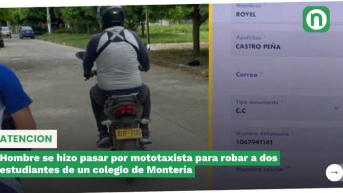 Hombre se hizo pasar por mototaxista para robar a dos estudiantes de un colegio de Montería