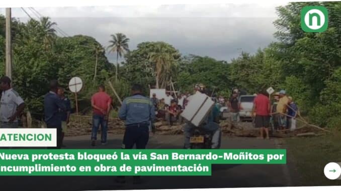 Nueva protesta bloqueó la vía San Bernardo-Moñitos por incumplimiento en obra de pavimentación