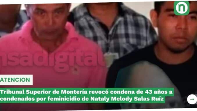 Tribunal Superior de Montería revocó condena de 43 años a condenados por feminicidio de Nataly Melody Salas Ruíz
