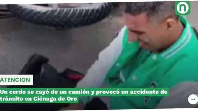Un cerdo se cayó de un camión y provocó un accidente de tránsito en Ciénaga de Oro