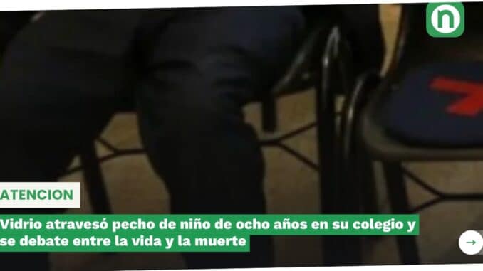 Vidrio atravesó pecho de niño de ocho años en su colegio y se debate entre la vida y la muerte