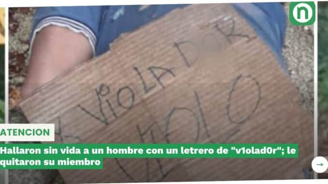 Hallaron sin vida a un hombre con un letrero de “v1olad0r”; le quitaron su miembro