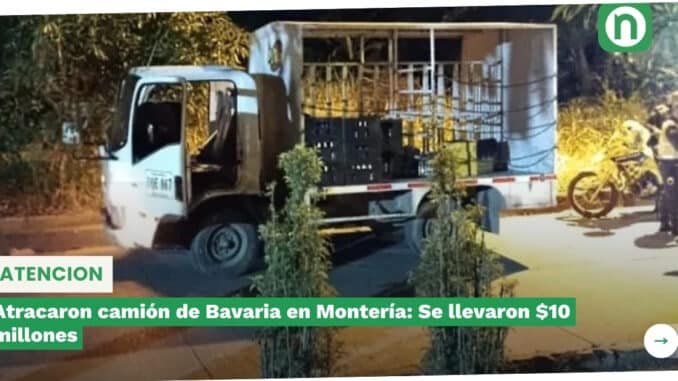 Atracaron camión de Bavaria en Montería: Se llevaron $10 millones