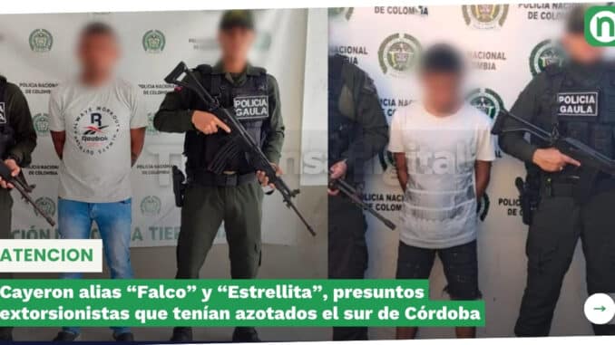Cayeron alias “Falco” y “Estrellita”, presuntos extorsionistas que tenían azotados el sur de Córdoba
