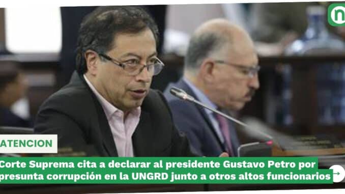 Corte Suprema cita a declarar al presidente Gustavo Petro por presunta corrupción en la UNGRD junto a otros altos funcionarios