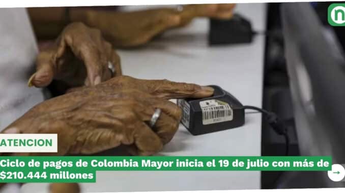 Ciclo de pagos de Colombia Mayor inicia el 19 de julio con más de $210.444 millones