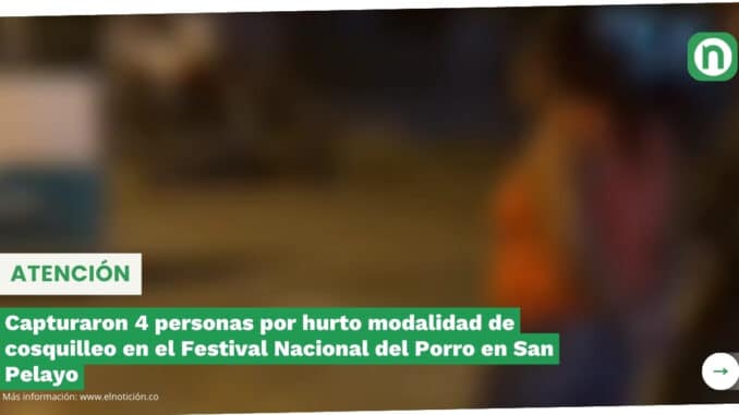 Capturaron 4 personas por hurto modalidad de cosquilleo en el Festival Nacional del Porro en San Pelayo