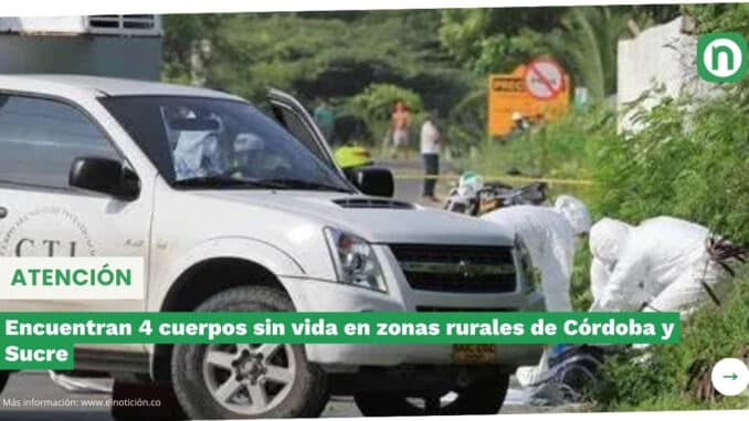 Encuentran 4 cuerpos sin vida en zonas rurales de Córdoba y Sucre