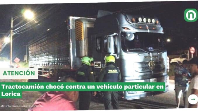 Tractocamión chocó contra un vehículo particular en Lorica