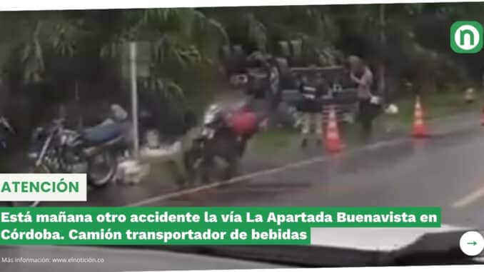 Está mañana otro accidente la vía La Apartada Buenavista en Córdoba. Camión transportador de bebidas