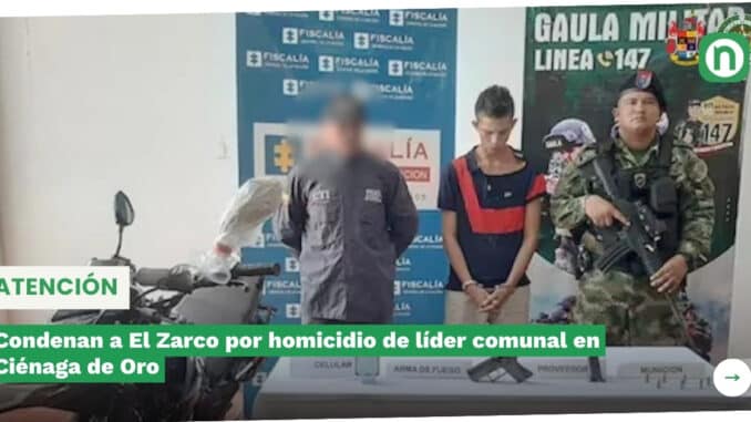 Condenan a El Zarco por homicidio de líder comunal en Ciénaga de Oro