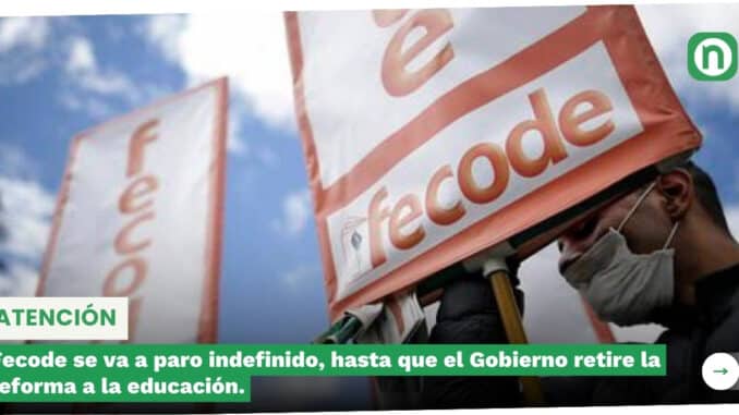 Fecode se va a paro indefinido, hasta que el Gobierno retire la reforma a la educación.