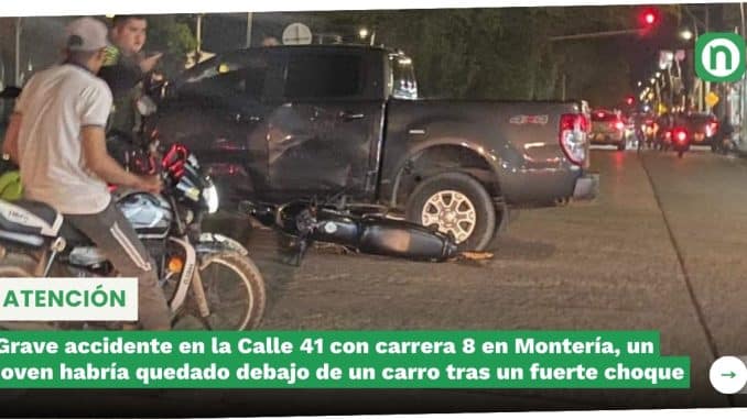 Grave accidente en la Calle 41 con carrera 8 en Montería, un joven habría quedado debajo de un carro tras un fuerte choque