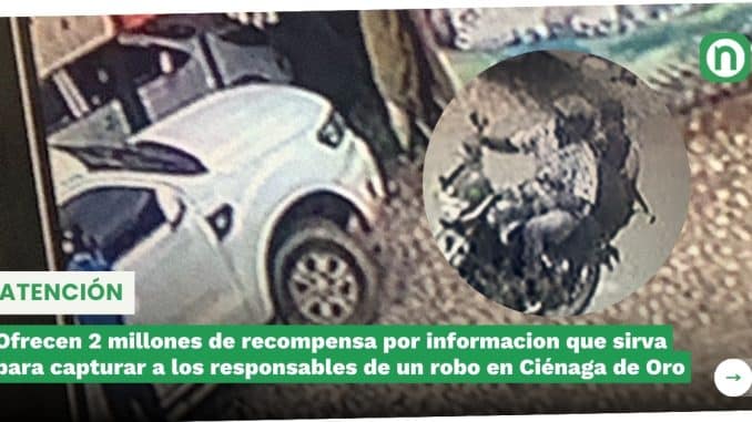 Ofrecen 2 millones de recompensa por informacion que sirva para capturar a los responsables de un robo en Ciénaga de Oro