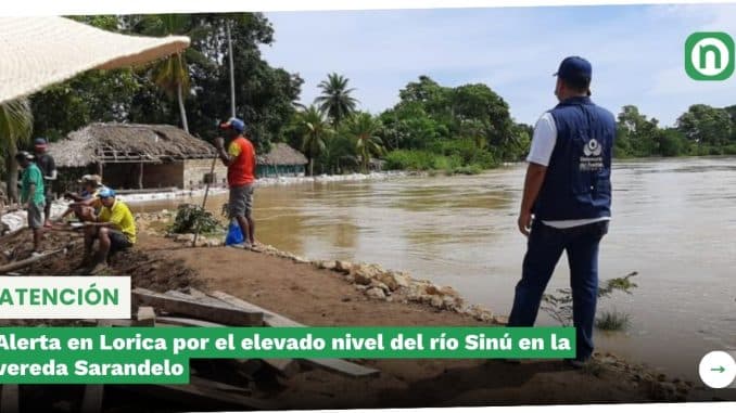 Alerta en Lorica por el elevado nivel del río Sinú en la vereda Sarandelo