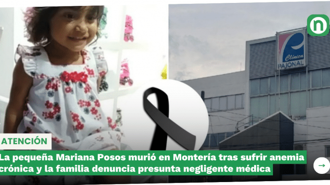 La pequeña Mariana Posos murió en Montería tras sufrir anemia crónica y la familia denuncia presunta negligente médica