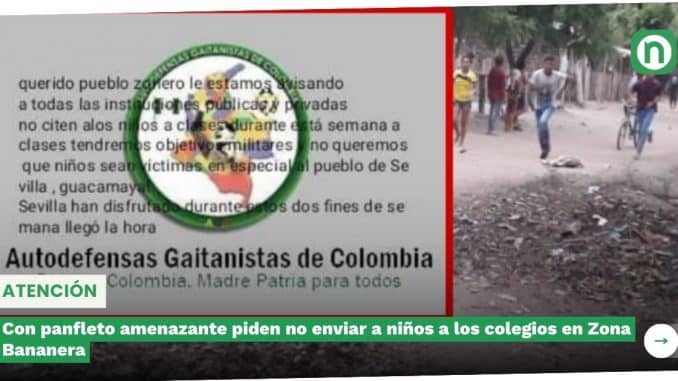 Con panfleto amenazante piden no enviar a niños a los colegios en Zona Bananera