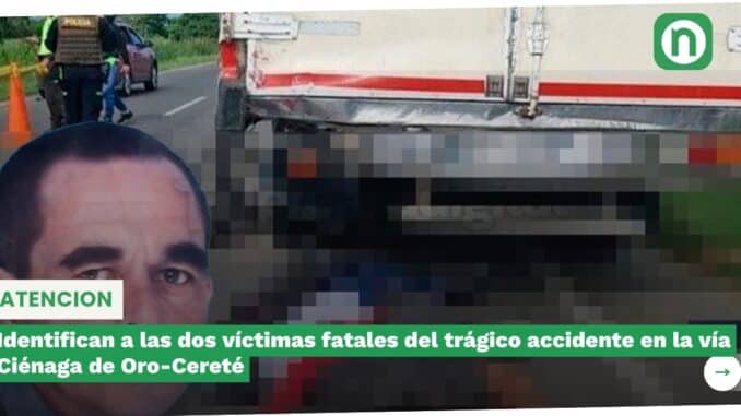 Identifican a las dos víctimas fatales del trágico accidente en la vía Ciénaga de Oro-Cereté