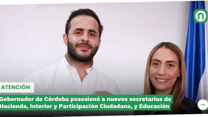 Gobernador de Córdoba posesionó a nuevos secretarios de Hacienda, Interior y Participación Ciudadana, y Educación