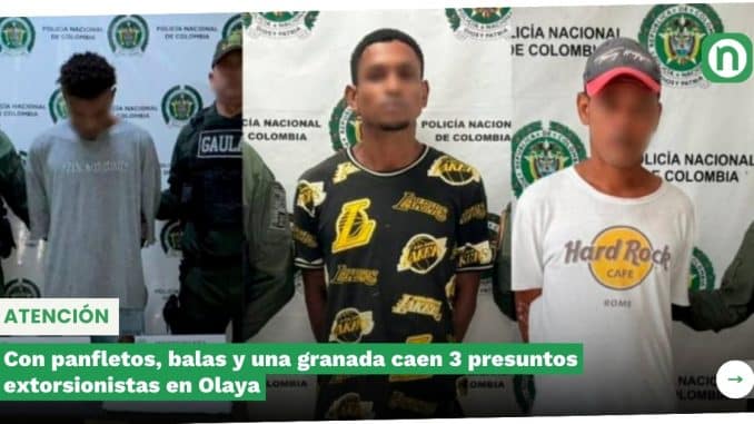 Con panfletos, balas y una granada caen 3 presuntos extorsionistas en Olaya