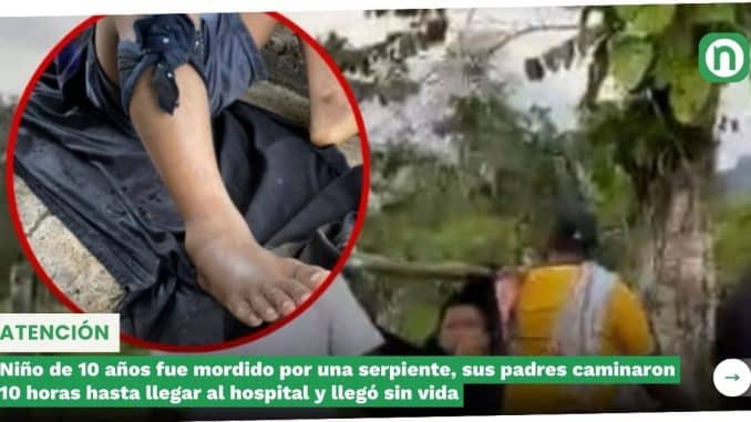 Niño de 10 años fue mordido por una serpiente, sus padres caminaron 10 horas hasta llegar al hospital y llegó sin vida