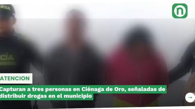 Capturan a tres personas en Ciénaga de Oro, señaladas de distribuir drogas en el municipio
