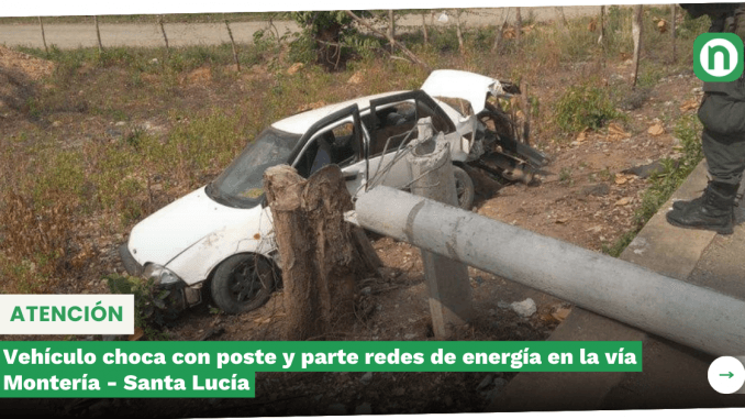 Vehículo choca con poste y parte redes de energía en la vía Montería – Santa Lucía