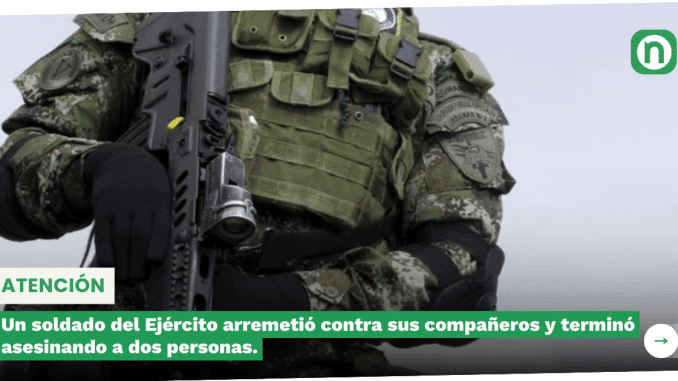 Un soldado del Ejército nacional arremetió contra sus compañeros y terminó asesinando a dos personas y dejando a otras dos heridas.