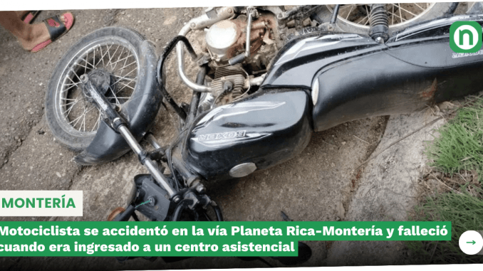Motociclista se accidentó en la vía Planeta Rica-Montería y falleció cuando era ingresado a un centro asistencial