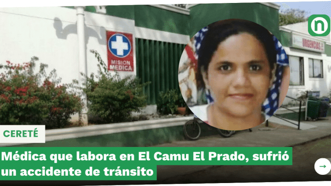 Médica que labora en El Camu El Prado, sufrió un accidente de tránsito