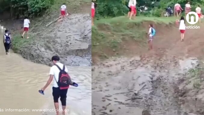 Estudiantes de Canaletico muestran las dificultades para llegar a su colegio en Canalete