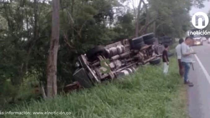Tractomula se volcó en la peligrosa curva Cardenita, entre Chinú y Sampués