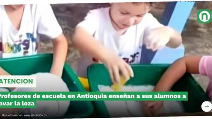 Profesores de escuela en Antioquia enseñan a sus alumnos a lavar la loza