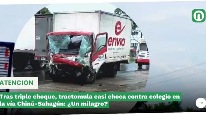 Tras triple choque, tractomula casi choca contra colegio en la vía Chinú-Sahagún: ¿Un milagro?