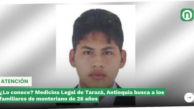 ¿Lo conoce? Medicina Legal de Tarazá, Antioquia busca a los familiares de monteriano de 26 años