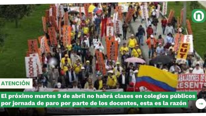 El próximo martes 9 de abril no habrá clases en colegios públicos por jornada de paro por parte de los docentes, esta es la razón