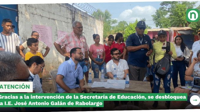 Gracias a la intervención de la Secretaría de Educación, se desbloquea la I.E. José Antonio Galán de Rabolargo