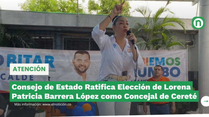 Consejo de Estado Confirma Elección de Lorena Patricia Barrera López como Concejal de Cereté