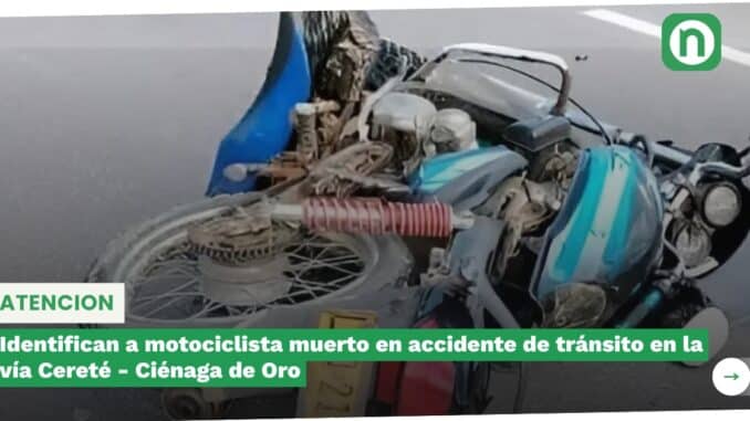 Identifican a motociclista muerto en accidente de tránsito en la vía Cereté – Ciénaga de Oro