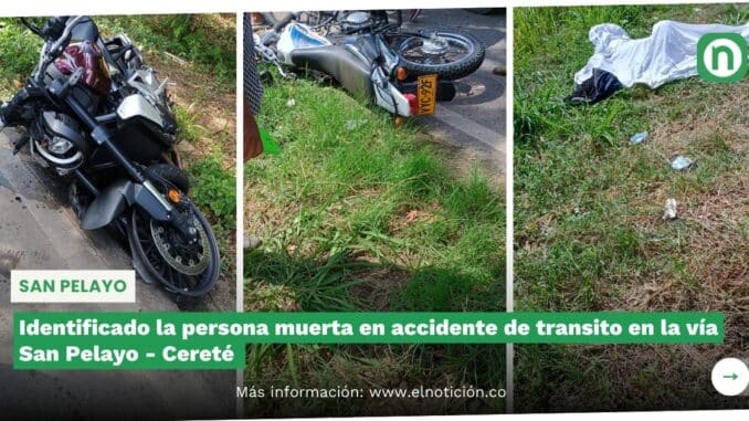 Identificado la persona muerta en accidente de transito en la vía San Pelayo – Cereté