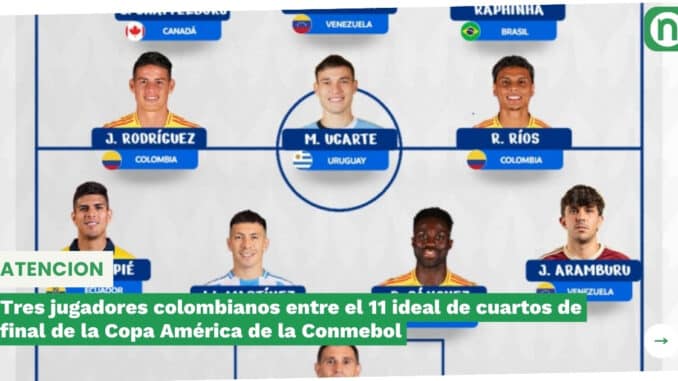 Tres jugadores colombianos entre el 11 ideal de cuartos de final de la Copa América de la Conmebol