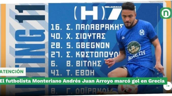 El futbolista Monteriano Andrés Juan Arroyo marcó gol en Grecia