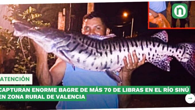 Capturan enorme bagre de más 70 de libras en el Río Sinú en zona rural de Valencia