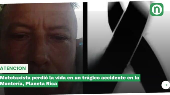 Mototaxista perdió la vida en un trágico accidente en la Montería, Planeta Rica